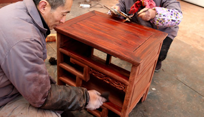 流程三雕刻工序 為了讓紅木家具看上去更美觀(guān),在木工工序完成之后一般都會(huì)用一些或簡(jiǎn)單或復(fù)雜的雕花來(lái)進(jìn)行裝飾,也就是行業(yè)中所說(shuō)的雕刻紋飾。雕刻紋飾必須在“認(rèn)榫”完成后進(jìn)行,因?yàn)椤罢J(rèn)榫”時(shí)需要修整,如果先做好雕花再開(kāi)榫,紋理很難保證雕花部件都在同一平面上,而此時(shí)為了保證雕花...